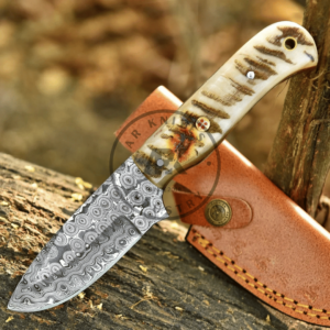 Handmade Damascus Steel Fixed Blade Knife with Bone Handle