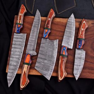 Custom hand made Professional Damascus Kitchen Set
