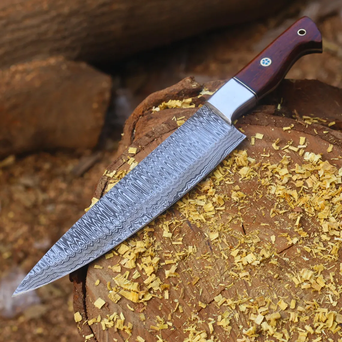 Handmade Damascus Steel Chef Knife with Hardwood Handle