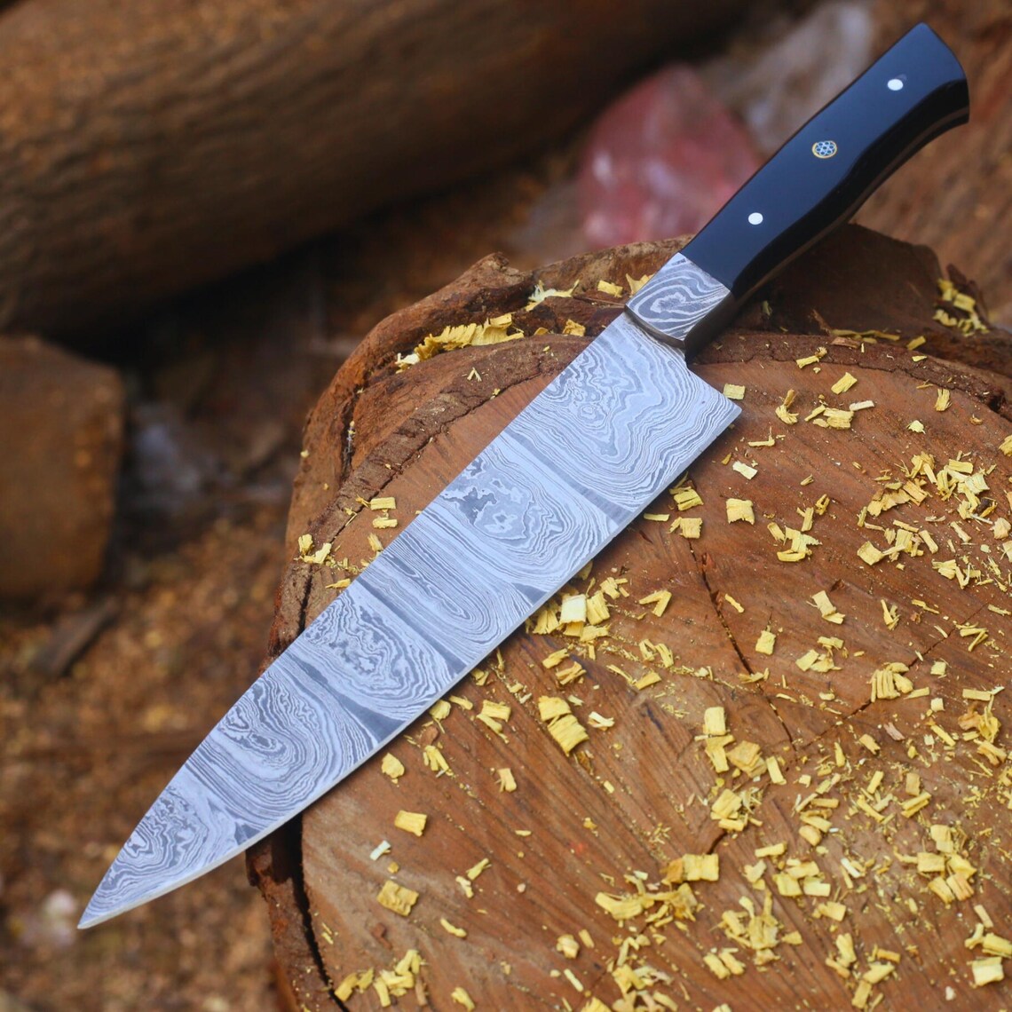 Handmade Damascus Steel Chef Knife with Natural Wood Handle