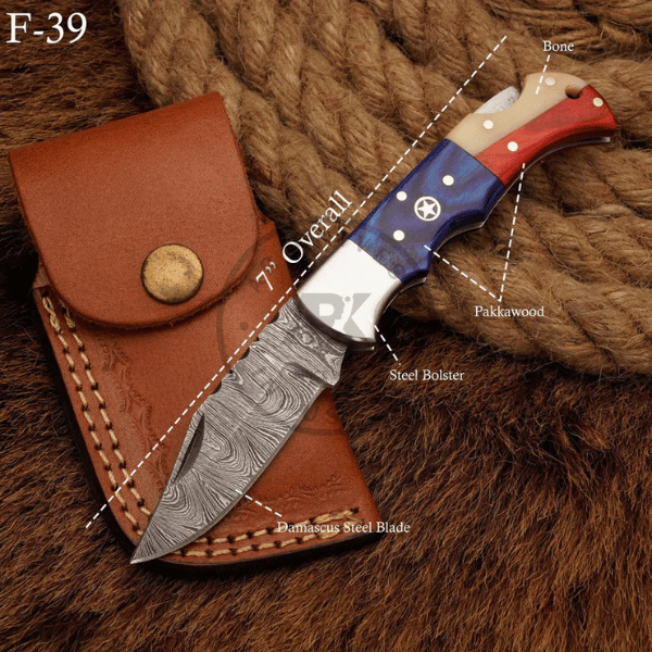 Leather Sheath Included With This Damascus Folding Knife