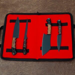 Professional Kitchen Knife Set with Coated Steel Blades & Roll Case